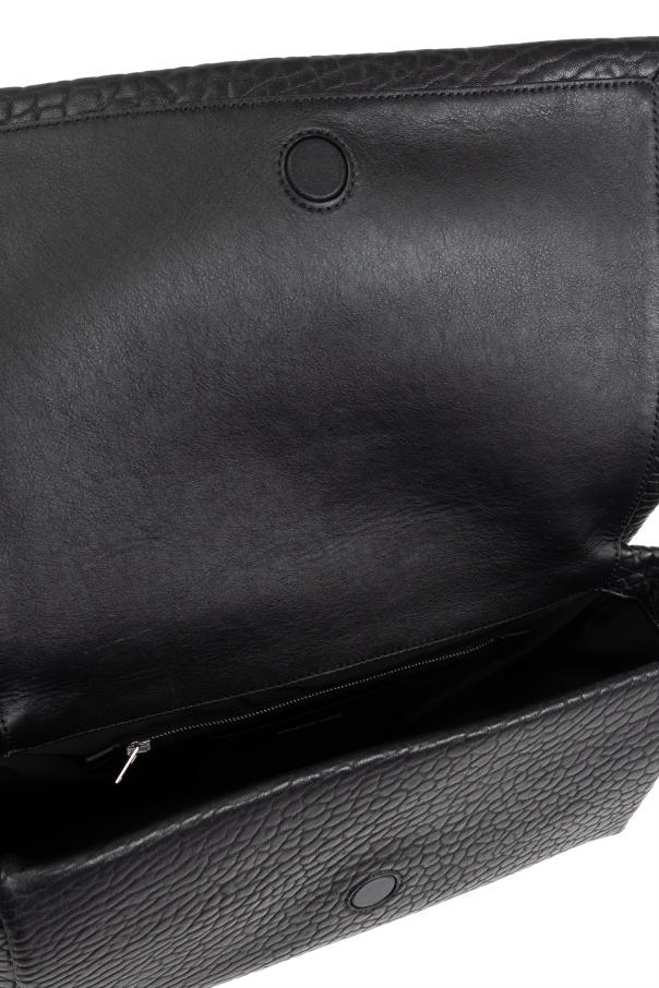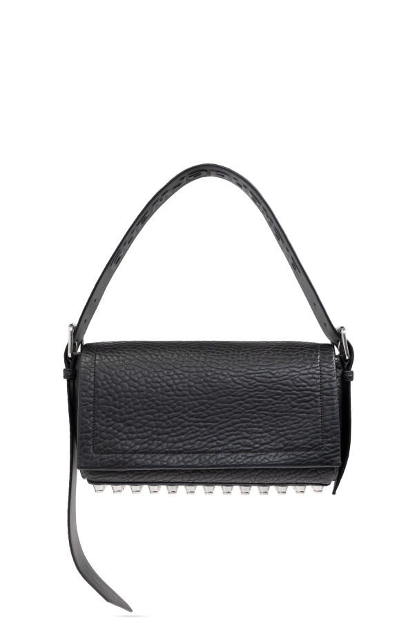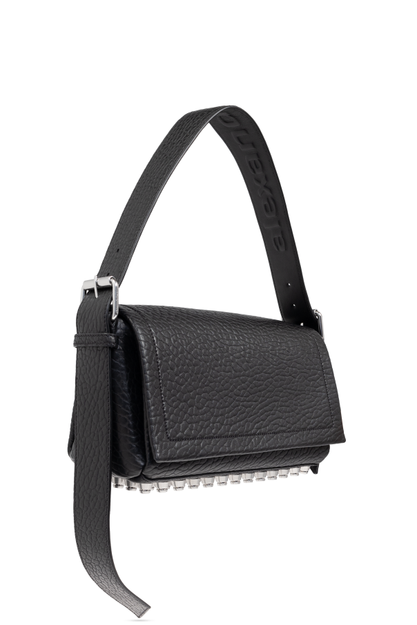 Introducing the Ricco Medium Shoulder Bag by the illustrious Alexander Wang. This exquisite accessory is crafted from the finest black lambskin, exuding sophistication with its distinct, grainy texture. The bag\'s rectangular silhouette is both modern and timeless, making it a quintessential addition to any wardrobe. The Ricco Medium features a sturdy, adjustable shoulder strap, ensuring both comfort and versatility. Its front flap is elegantly secured with a magnetic clasp, opening to reveal a spacious interior. The bag boasts an additional zippered pocket inside, offering seamless organization for your essentials. Silver-toned metal accents adorn the strap fastenings, imparting a contemporary allure to this classic piece. The Ricco Medium is a sublime fusion of elegance and functionality, embodying the essence of Alexander Wang\'s iconic design ethos. Why Choose This Product? Exquisite black lambskin with a unique grainy texture Adjustable shoulder strap for personalized comfort Spacious interior with an additional zippered pocket Magnetic flap closure for secure and effortless access Silver-toned hardware for a modern touch