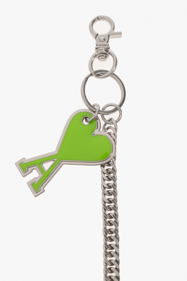 Silver-tone keyring from Ami Alexandre Mattiussi. Emblazoned with a green logo pendant, this item features a lobster clasp fastening.