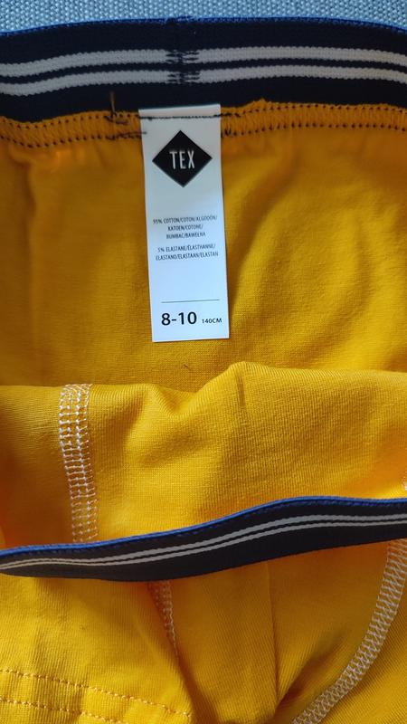 Размер: 8-10, подойдут реально на 6-8 лет.Цвет: желтый, синий и голубой. На резинке. Состав: 95% коттон, 5% эластан.