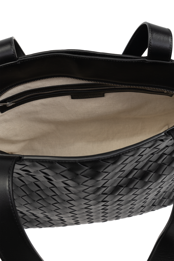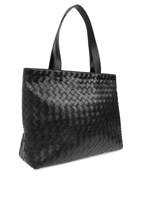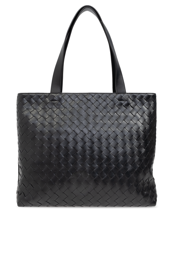 Introducing the epitome of sophistication and craftsmanship, the Bottega Veneta Black Shopper Bag. Fashioned from the finest 100% leather, this exquisite piece showcases the iconic Intrecciato weave, a hallmark of luxury and meticulous design. Its rectangular silhouette with subtly rounded corners exudes a minimalist elegance, making it a timeless addition to any wardrobe. The bag\'s seamless exterior, devoid of any visible logos or inscriptions, accentuates its sleek and orderly appearance, while the dual elongated handles offer versatile shoulder wear. The interior, lined with premium material, reveals a practical layout featuring a zippered pocket, two slip pockets, and a detachable key strap, enhancing its functionality without compromising style. Why Purchase This Bag? Made with high-quality leather and the distinctive Intrecciato pattern. Minimalist design that promises to remain timelessly elegant. Interior compartments including a zip pocket and two slip pockets, plus a key strap, for optimal organization. A testament to Bottega Veneta\'s legacy of luxury and sophistication.