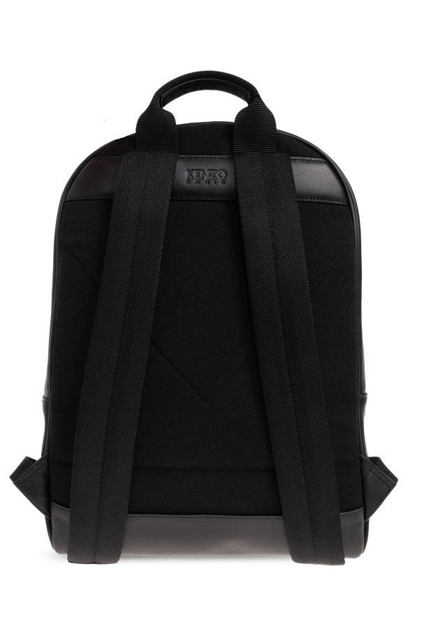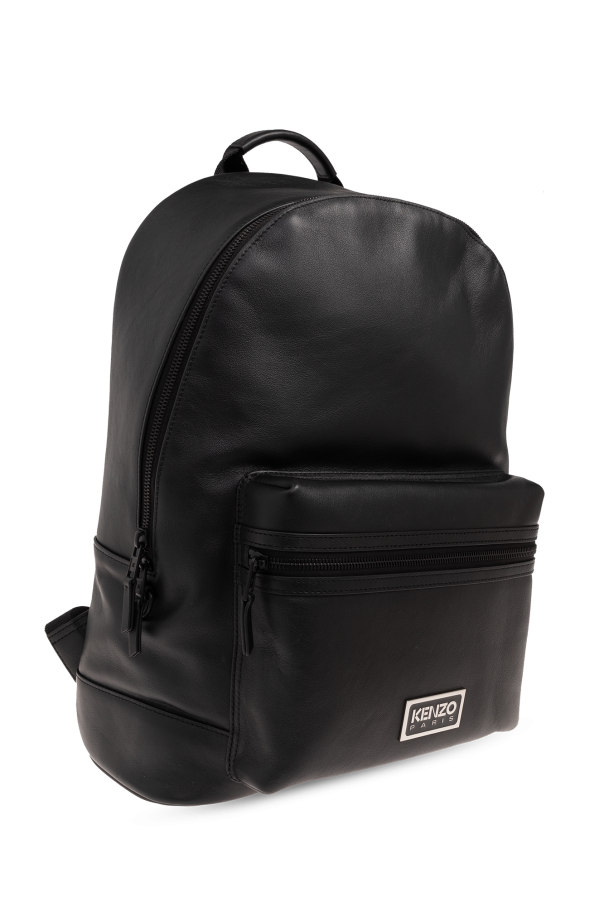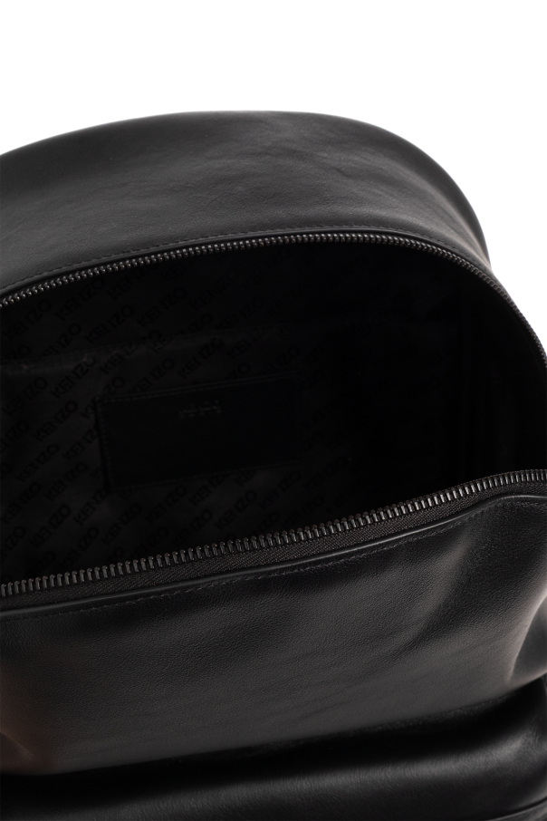 Black backpack from Kenzo. Made of leather, this design features a two-way zip, logo detail, zipped back pocket, adjustable shoulder straps, black metal hardware and one internal compartment with one slip pocket and one card slot.