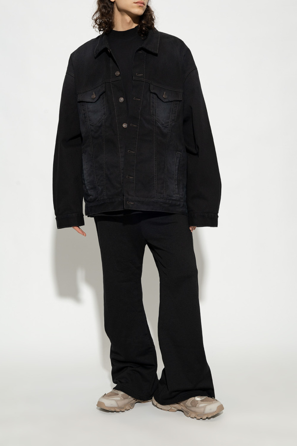 Beige \'Track.3\' sneakers from Balenciaga. Crafted from mesh and trimmed with rubber, this lace-up model features a vintage effect, black logo detailing, an embroidered size at the edge of the toe, a back appliqué and a beige rubber sole.