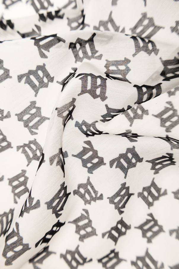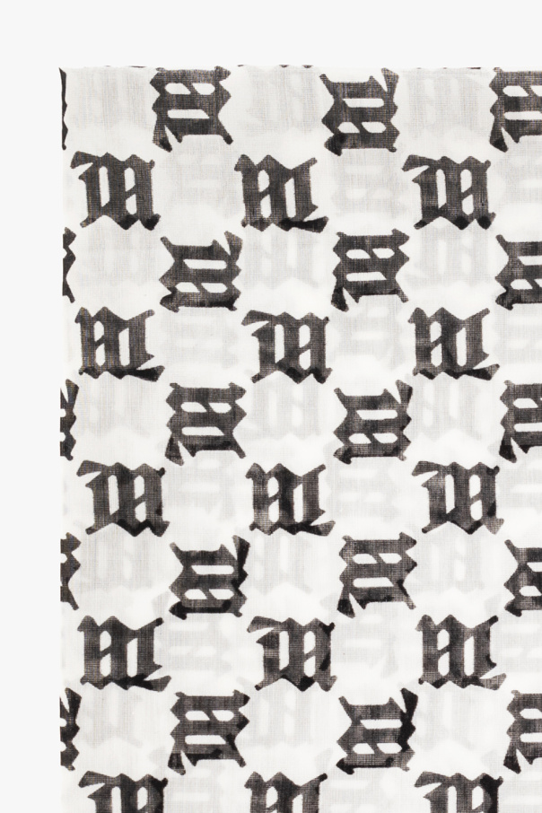 White and black scarf from MISBHV. Made from a cotton and silk blend, this item is decorated with a monogram and logo patch.