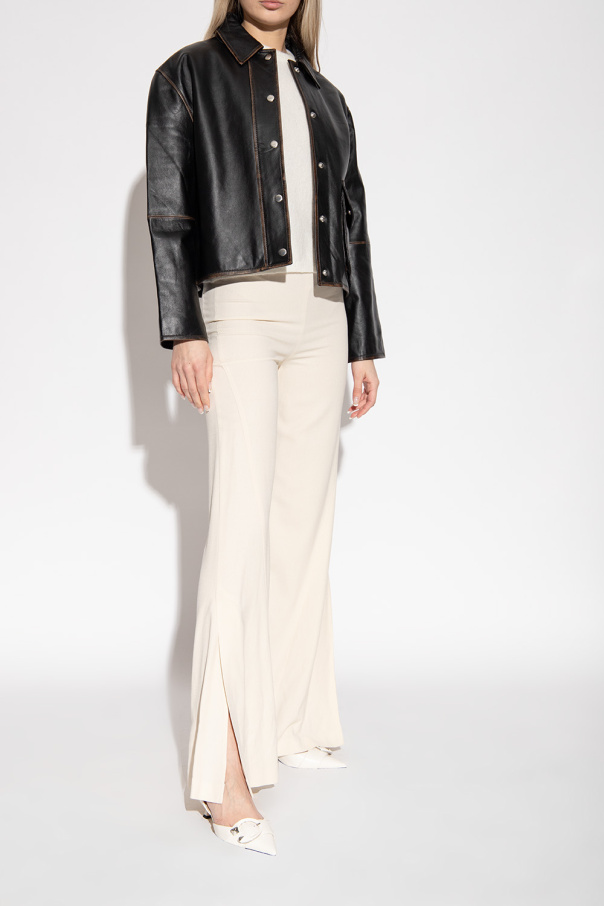 Cream ‘Moni’ slingback pumps from Jimmy Choo. Made of leather, this pair features a strap with a decorative buckle, pointed toe and cream leather sole.