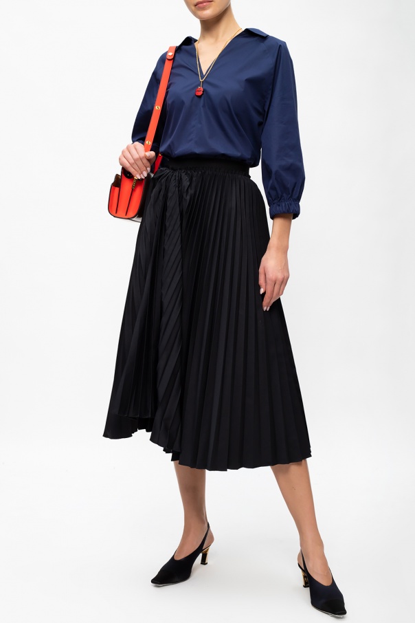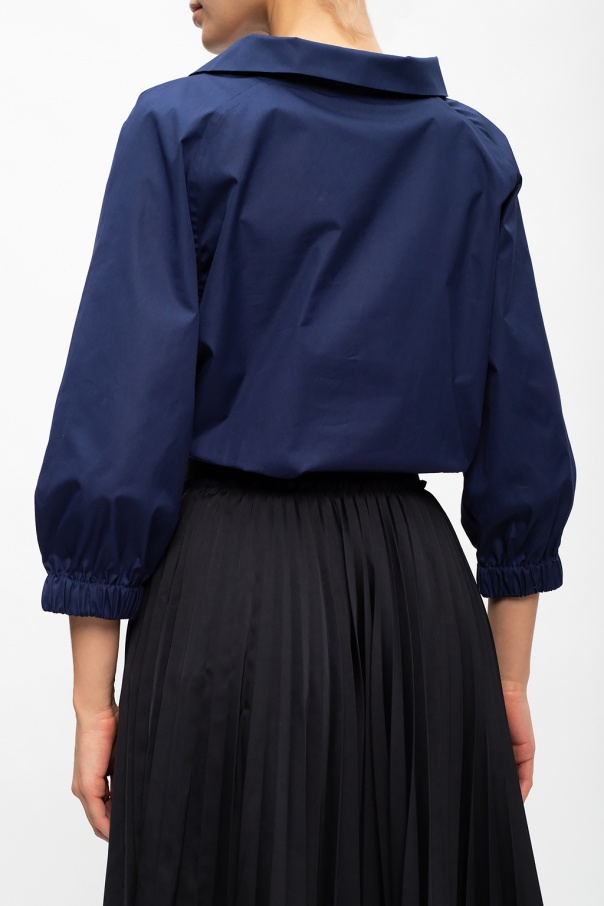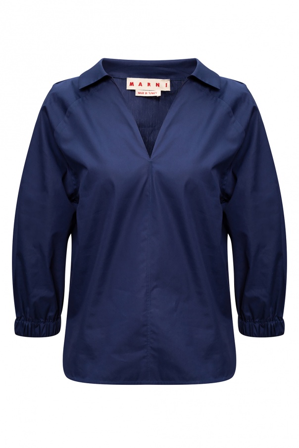 Navy blue top from Marni. Crafted from cotton, this style features a flat collar with a V-shaped neckline and three-quarter raglan sleeves with elasticated cuffs.