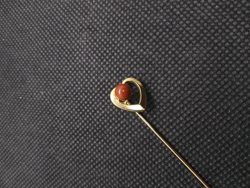 брошь игла сердечко с бусинкой