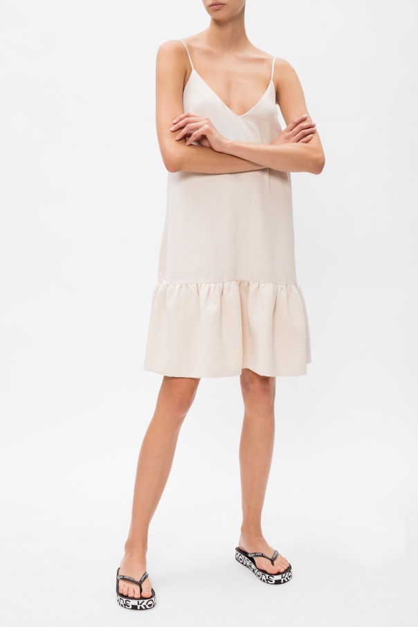 Black and white flip-flops from Michael Kors. Set on a black platform sole in rubber, this pair has embossed the designer\'s branding.