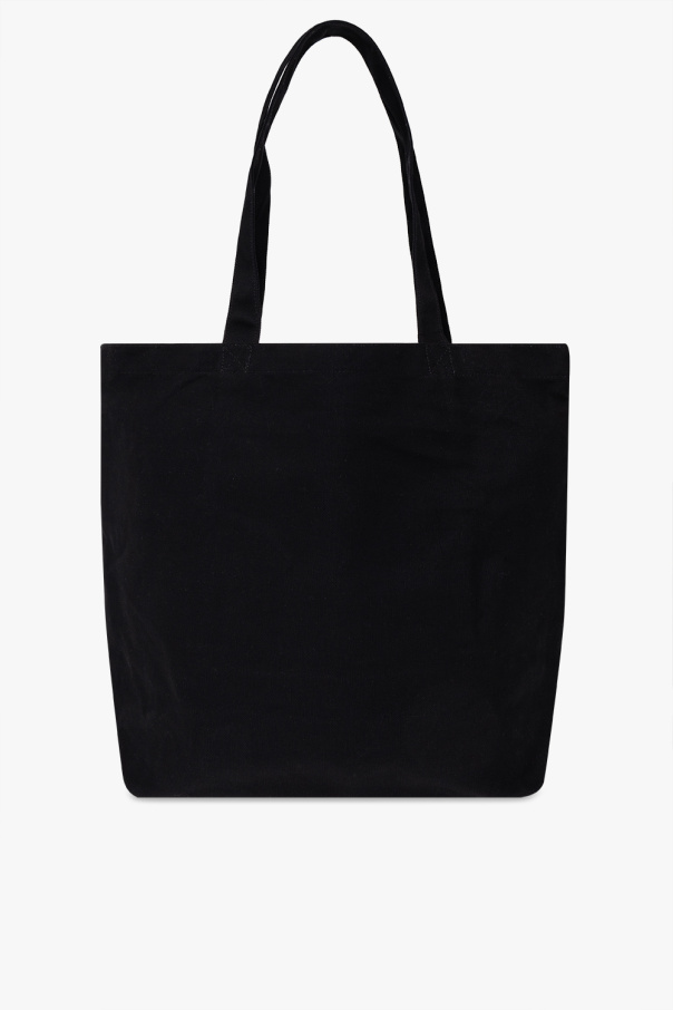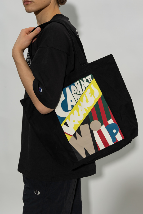 Black shopper bag from Carhartt WIP. Made of cotton, this design features a multicolored logo pattern, two half-round handles and one internal compartment with one slip pocket.