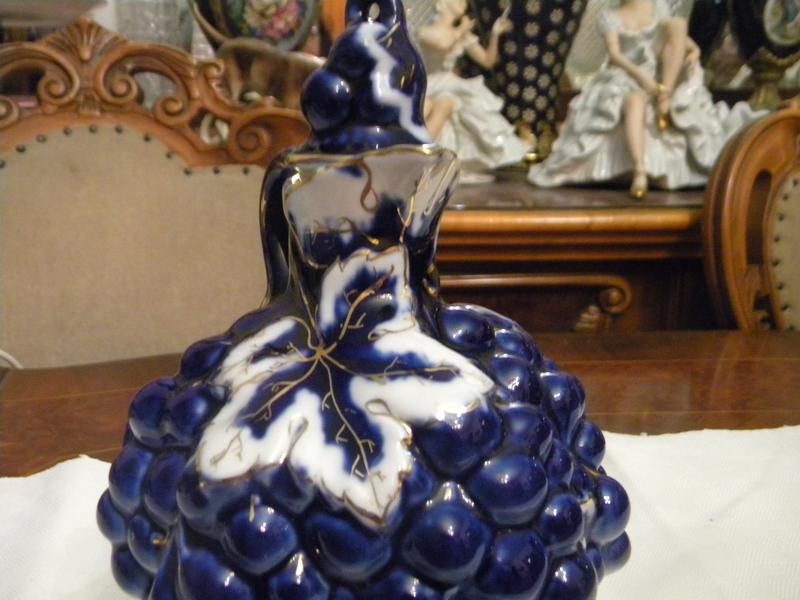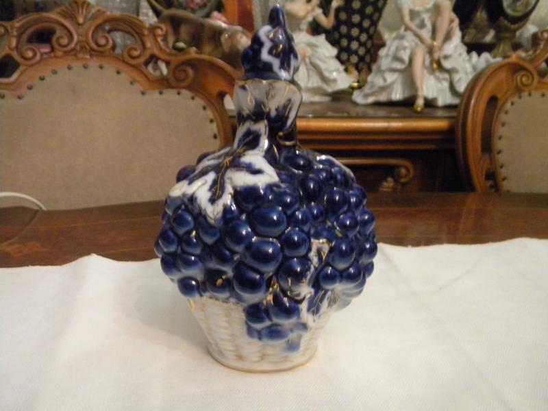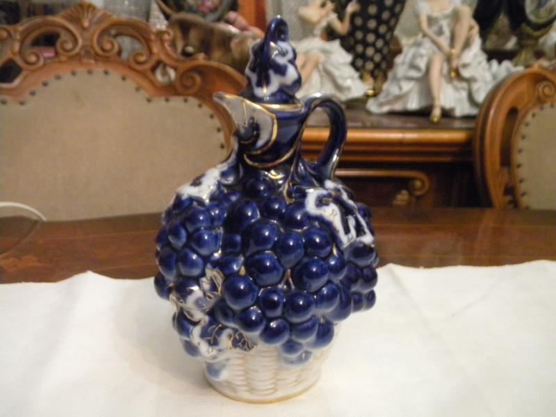 Графин - Глечик Виноград в Кошику Фарфор СРСР Без сколів і подряпин, Тріщинка верху кришки на фото ГРАФИН - ГЛЕЧИК "ВИНОГРАД У КОШИКУ" ВИГОТОВЛЕНИЙ ІМПЕРАТОРСЬКОМУ ФАРФОРОВОМУ ЗАВОДІ ЛПЗ З ТВЕРДОГО ФАРФОРУ ФОРМА ВІДЛИВАЄТЬСЯ ВРУЧНУ ДЛЯ ДЕКОРУВАННЯ ВИКОРИСТОВУЄТЬСЯ ПІДГЛАЗУРНИЙ І НАДГЛАЗУРНИЙ РУЧНИЙ РОЗПИС . АВТОР ФОРМИ І МАЛЮНКА БРОНІСЛАВ БИСТРУШКІН АВТОРСЬКА МОДЕЛЬ БУЛА СТВОРЕНА В 1955 РОЦІ. ОБСЯГ 1160 МЛ. ВИСОТА 24 СМ.