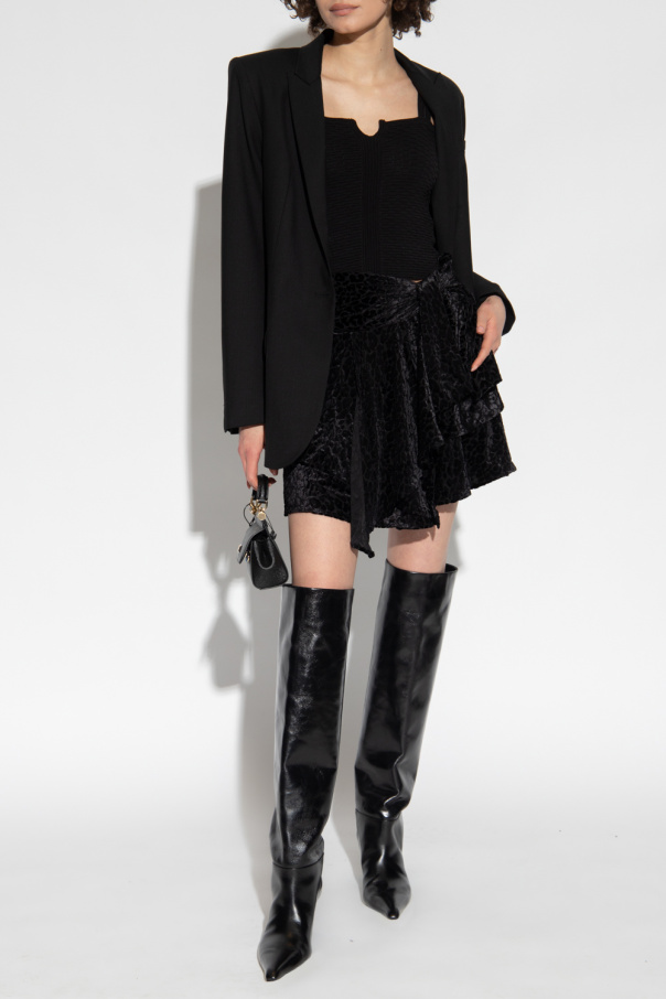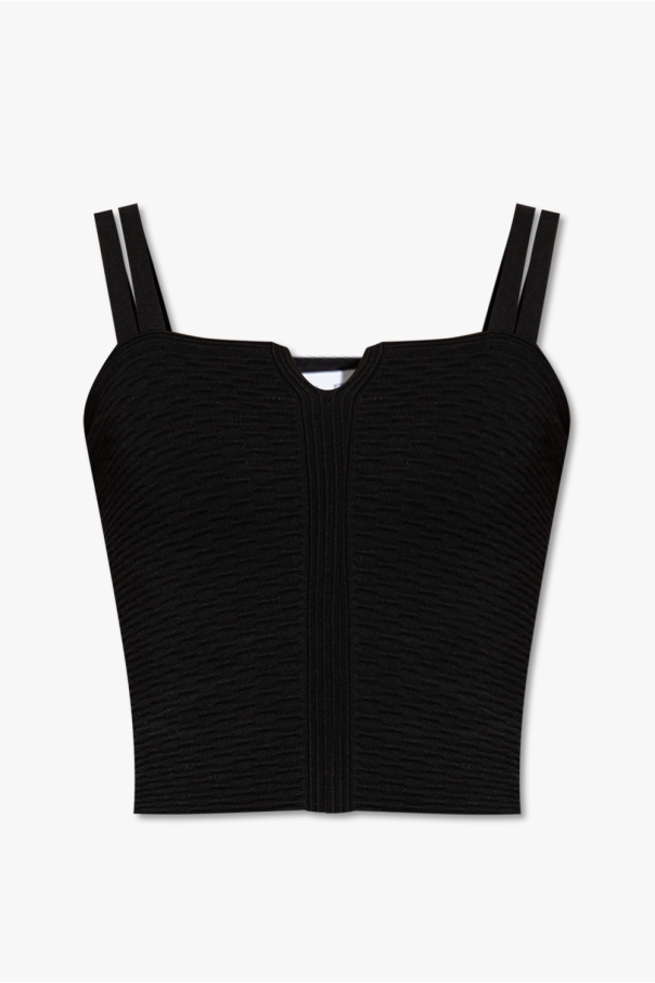 Black ‘Nicea’ crop top from Iro. Crafted from textured fabric, this design features a square neck with a cut-out and double shoulder straps.
