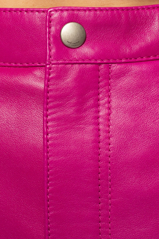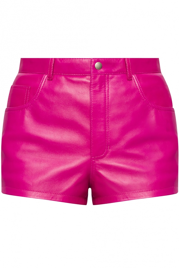 Pink shorts from Saint Laurent. Crafted from lamb leather, this pair features zip fly with button closing and five pockets.