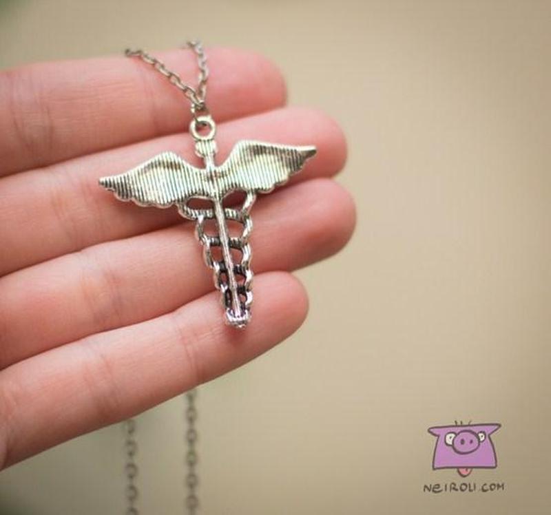 Кулон «Кадуцей» с цепочкой. Кулон с изображением кадуцея (посоха, обвитого