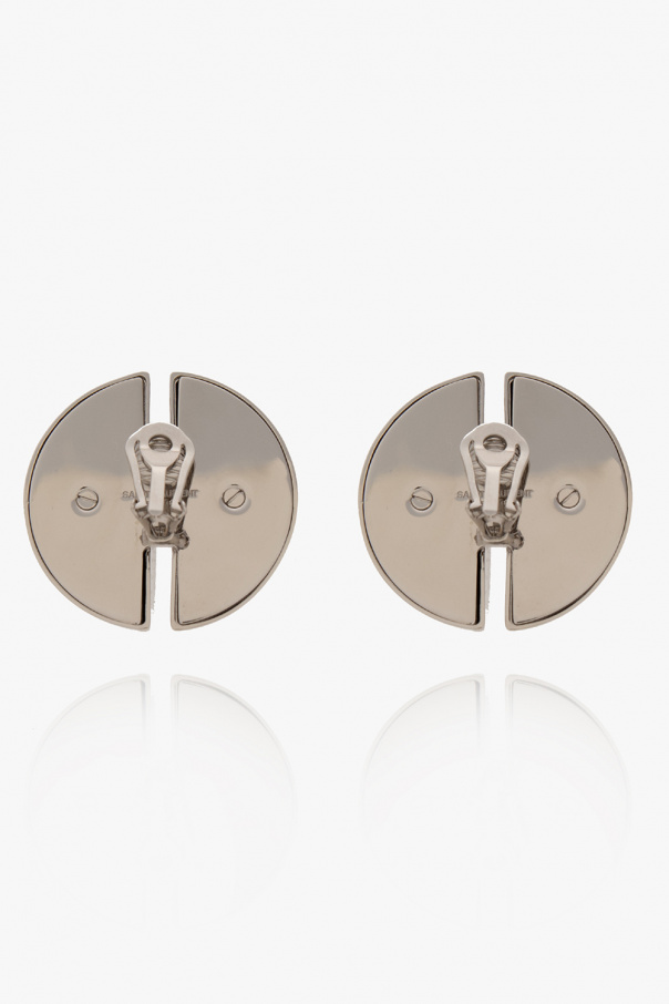 Silver-tone clip-on earrings with a decorative shape from Saint Laurent. Made of brass.