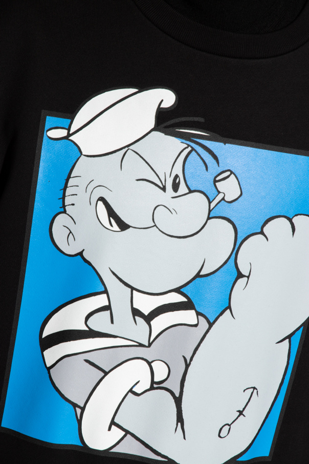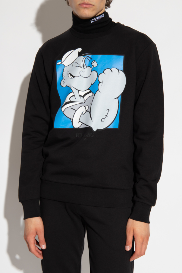 Black crewneck sweatshirt from Iceberg. Crafted from cotton jersey, this style showcases a colourful Popeye print and ribbed trims on the collar, bottom hem and cuffs.