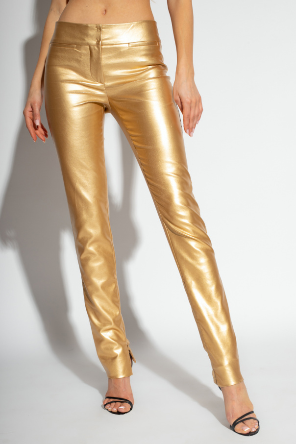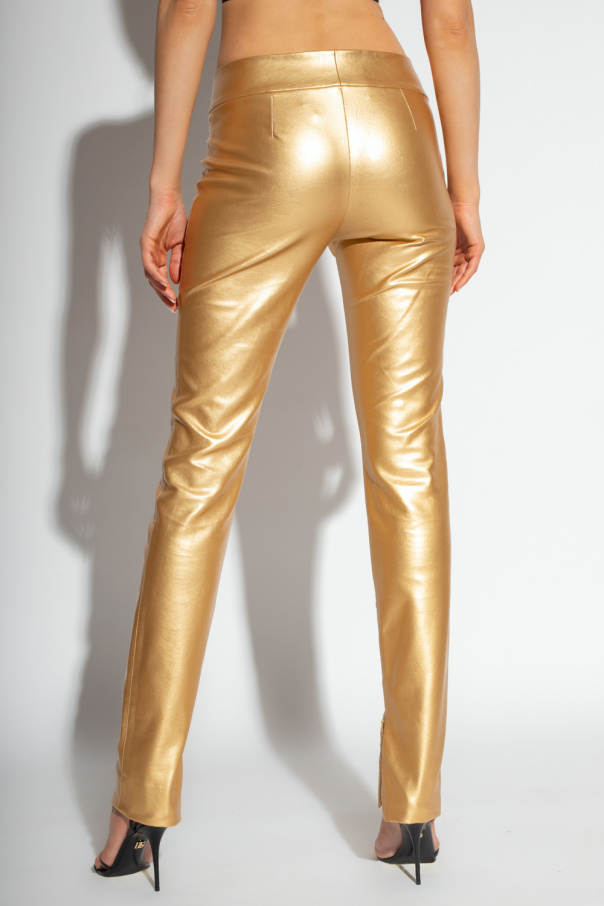 Gold-tone trousers from Dolce & Gabbana. Made of faux leather, this pair features a zip and snap fastening and slightly tapered legs with zips.