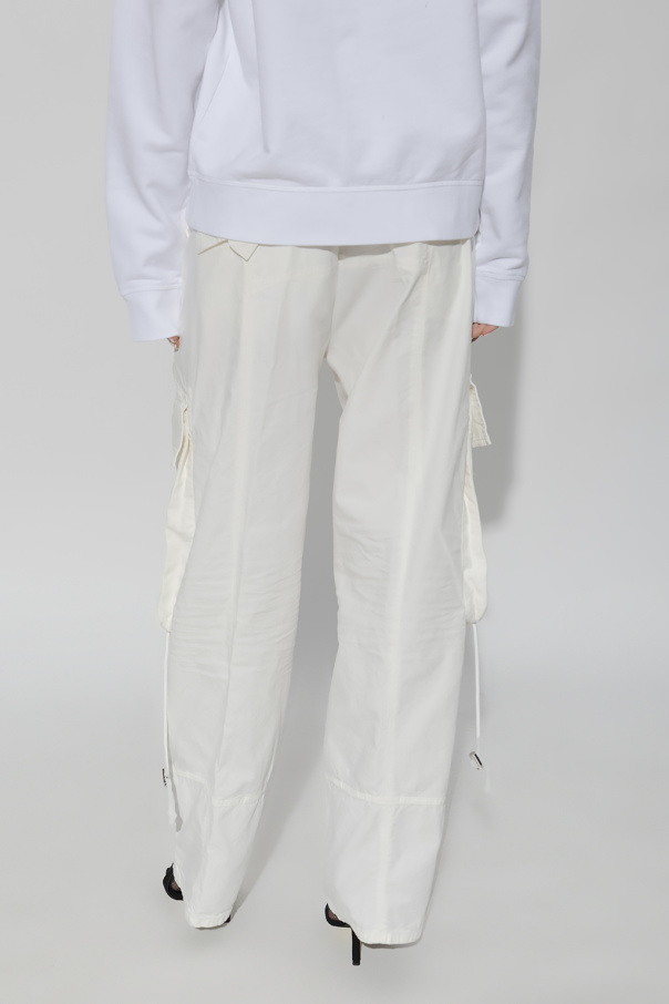 White trousers from Dsquared2. Crafted from cotton, this pair features a zip and button closure, logo detail and multiple pockets.