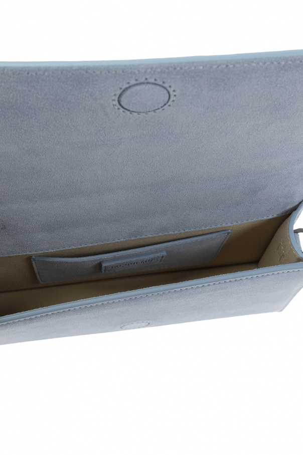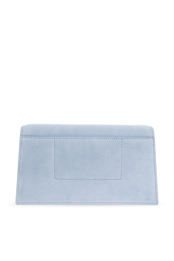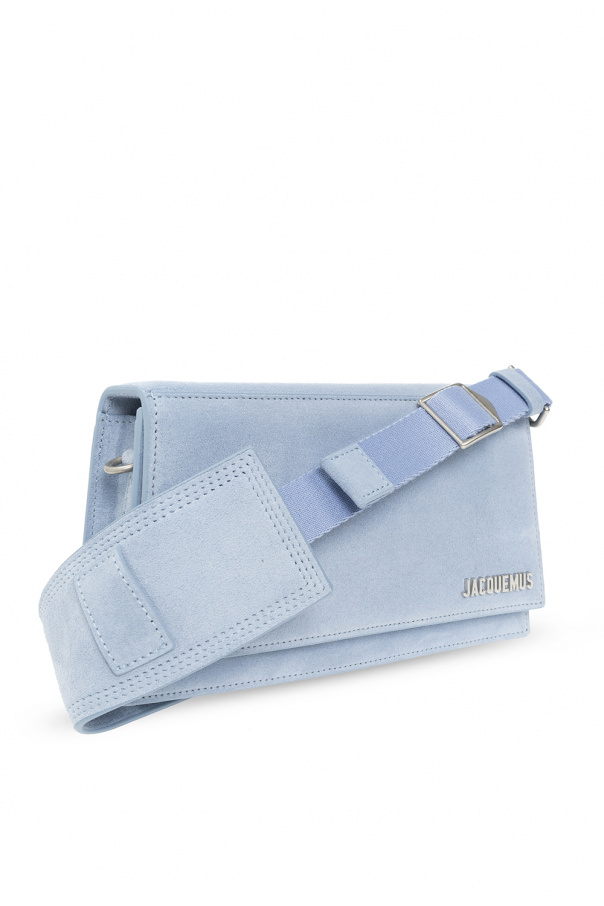 Light blue ‘Le Bambino’ shoulder bag from Jacquemus. Crafted from suede, this design secures with a magnetic fastener and features a metal logo plaque, a back card slot, a detachable and adjustable shoulder strap with a snap-fastened pocket, silver-tone metal hardware and one internal compartment with a card slot.