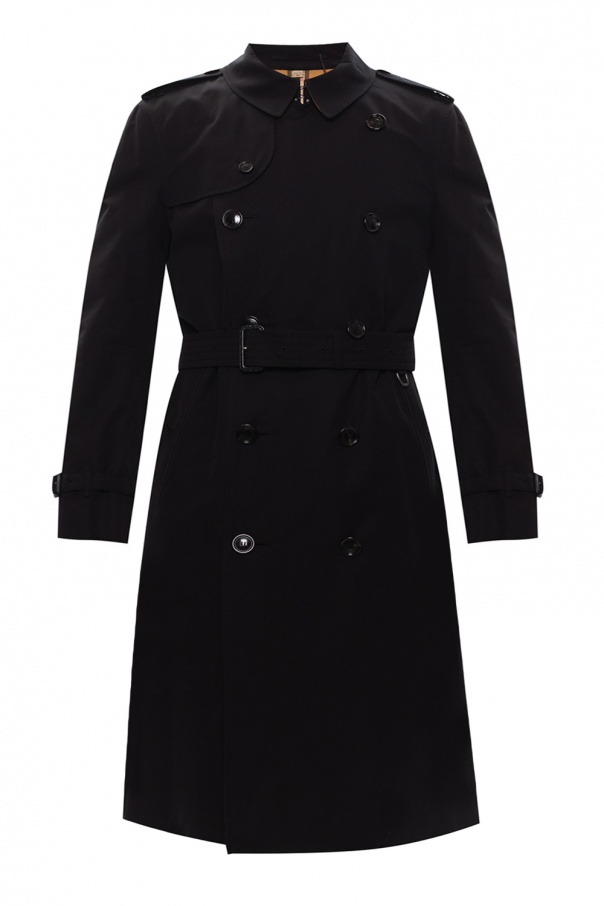 Black ‘Chelsea’ trench coat from Burberry. Crafted from 100% cotton, this double-breasted design has button fastening, buckle belt at the waist, two buttoned pockets and signature check lining. By buying this product, you support responsibly and sustainably grown cotton within the Better Cotton Initiative.