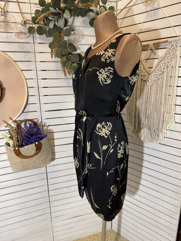 Коротенька сукня виготовлена із сатину, в ніжний квітковий принт. Сукня з підкладкою, має спідничку на запах. На налії резиночка