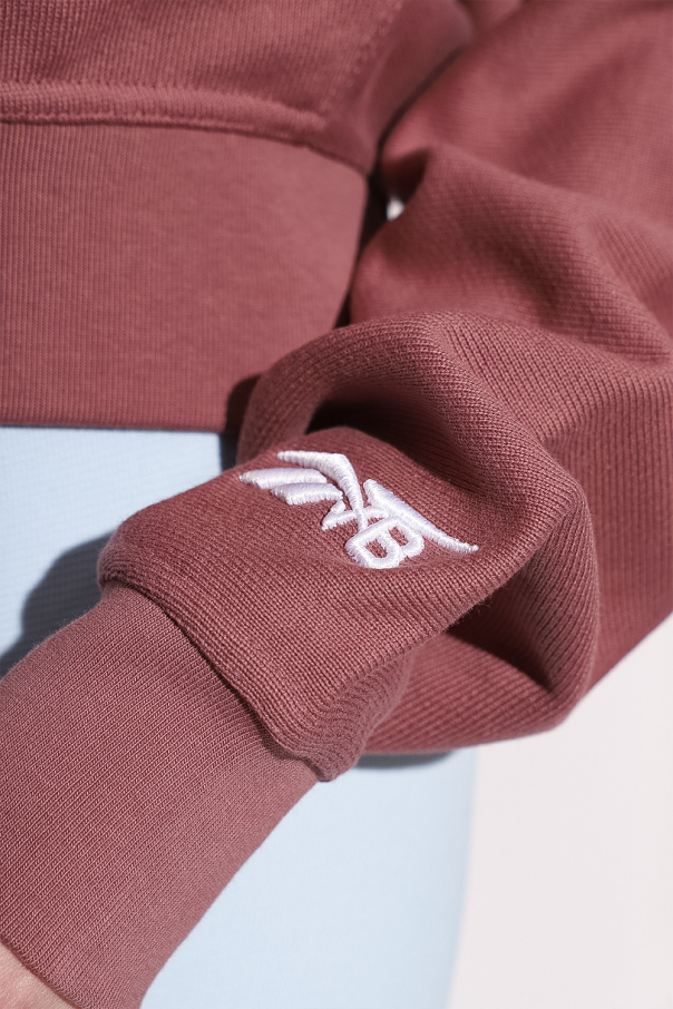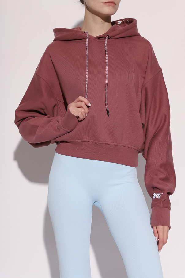 Pinkish brown loose-fitting sweatshirt from Reebok x Victoria Beckham. Crafted from cotton, this garment features a white logo embroidery, drawstring hood and ribbed trims at the hem and cuffs.