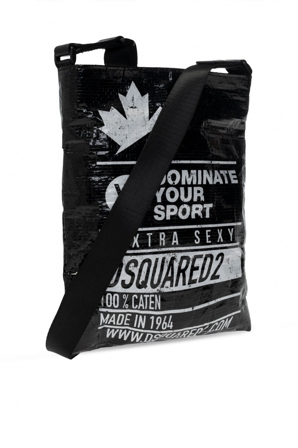 Black shoulder bag from Dsquared2. Fastened with a zip, this design features a printed logo pattern in white, adjustable shoulder strap and one internal compartment with one slip pocket.