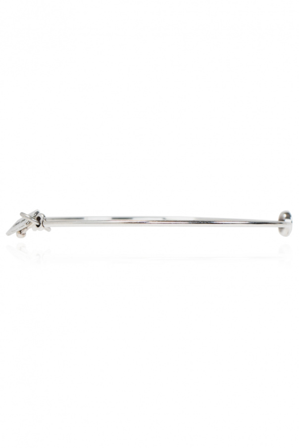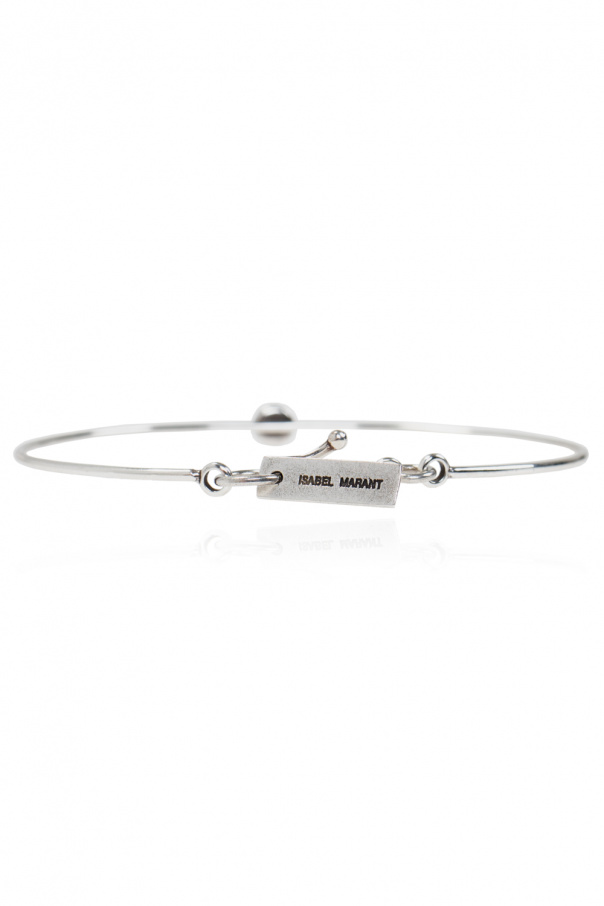Silver-tone bracelet from Isabel Marant. Made of brass, this item secures with a hook and showcases a decorative navy blue, white and black accessory.
