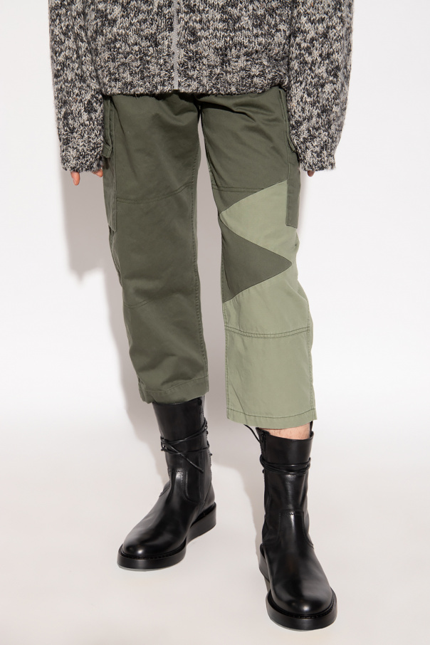 Green trousers from Undercover. Falling with slightly tapered legs, this cotton-crafted pair features an elasticated waistband, two slip pockets and four button pockets.