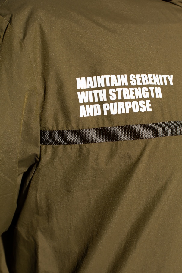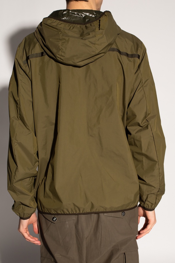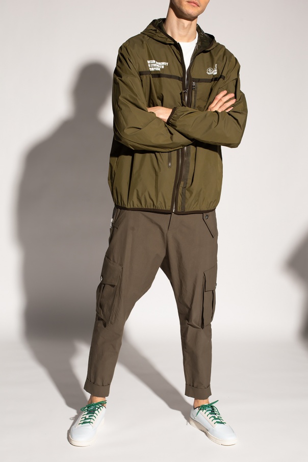 Green ‘Orkhon’ hooded jacket Moncler Genius, the ‘1952 no. 2’ collection. Fastened with a zip, this garment features a printed logo pattern in white and a front zip pocket.