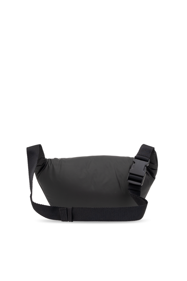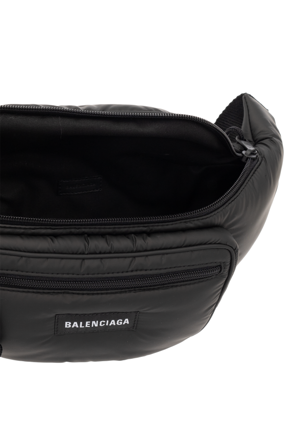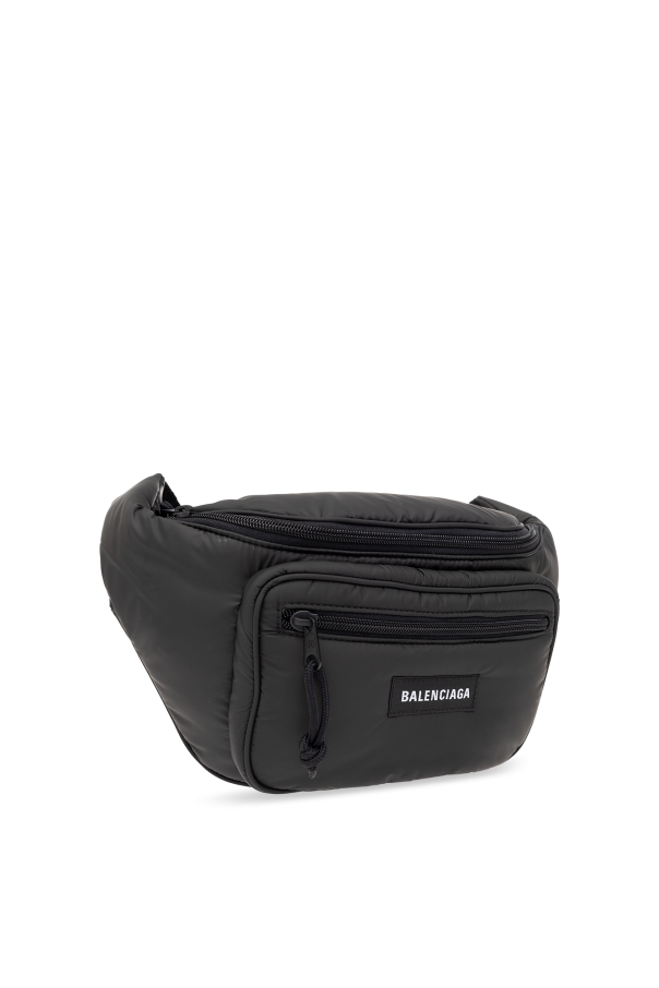 Black ‘Explorer’ belt bag from Balenciaga. Emblazoned with a logo patch on the front zip pocket, this item features a zip fastening, adjustable strap, black metal hardware and one internal compartment.