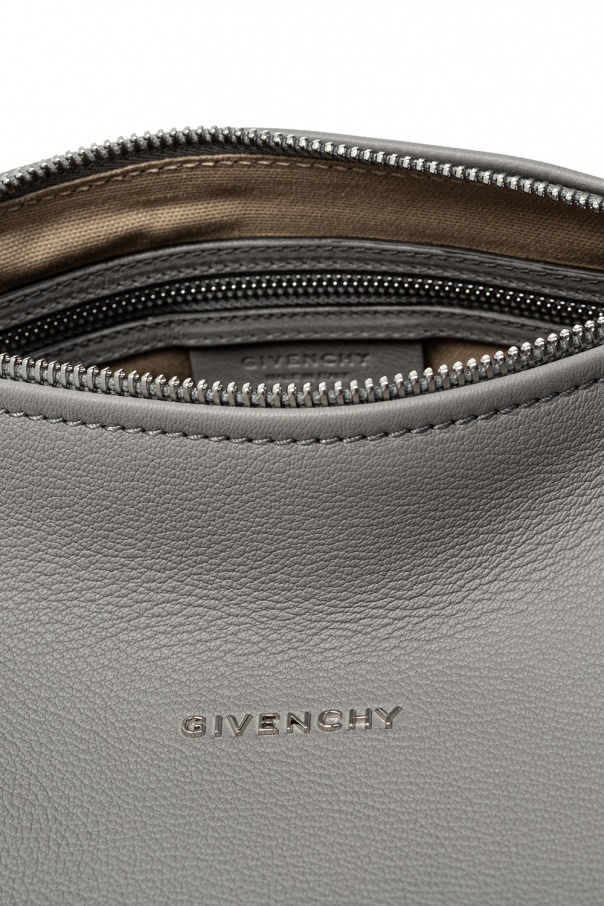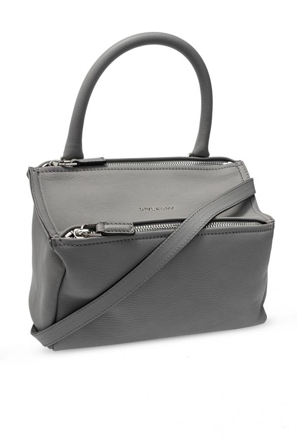 Grey ‘Pandora Small’ shoulder bag from Givenchy. Crafted from textured goat leather, this design fastens via zip and showcases silver-tone metal hardware including the label\'s logo. Rendered in a small size, it is complete with an external zip pocket on the front, a half-round handle, a detachable shoulder strap and black clad interior with one compartment and one zip pocket.