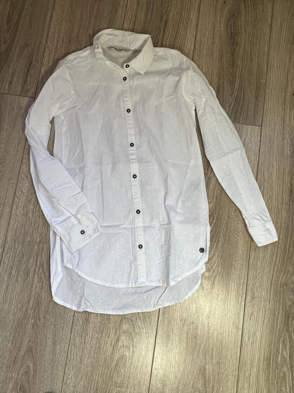Длина по спинке 67 см, длина спереди 60 см, пог 38 см, рукав 59 смСостояние: ИдеальноеЦвет:- Белый