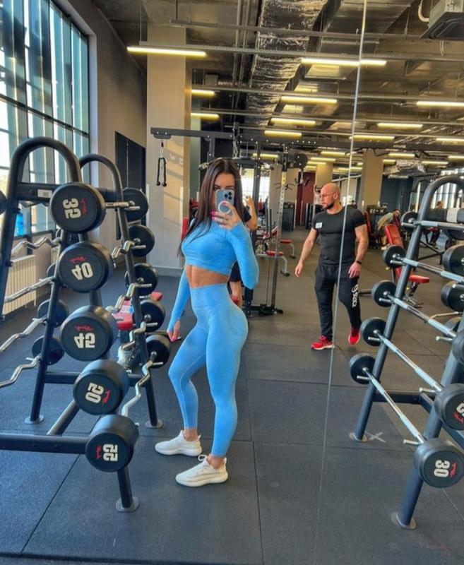 Спортивная одежда бесшовная. Топ и лосины. Хорошо тянется. Топ без поролоновых вставок