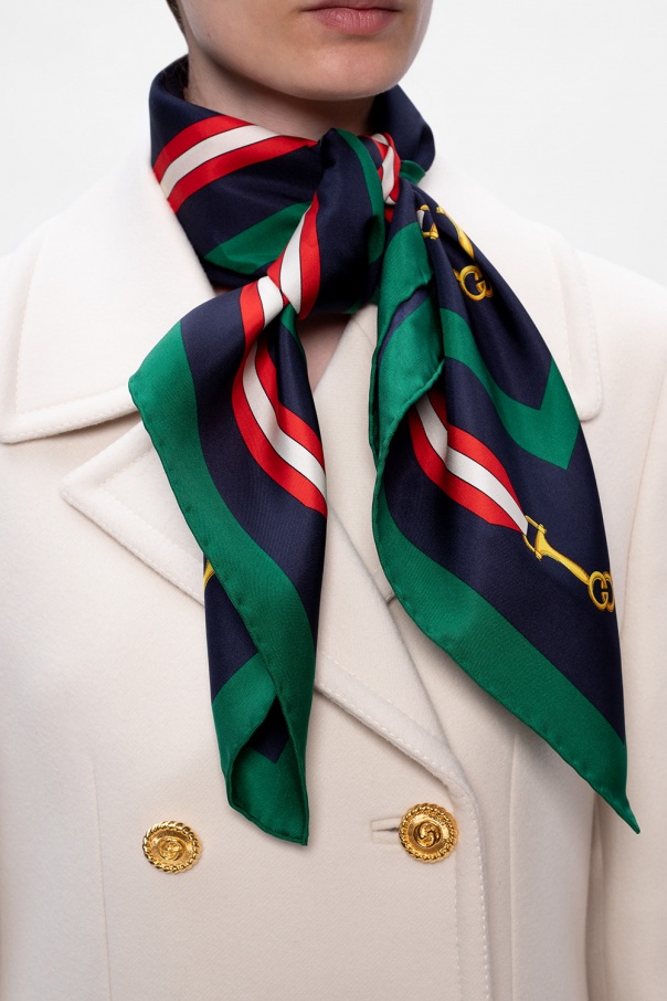 Multicoloured shawl from Gucci. Crafted from silk, it is illustrated with a logo print.
