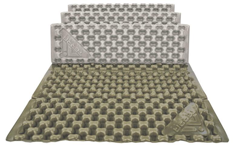 Компактный и легкий складной туристический коврик с рельефной поверхностью.