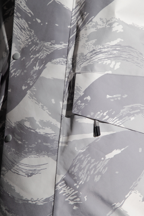 Grey vest from Moncler Genius, the ‘4 Moncler Hyke’ collection. Embellished with a camo motif, this style fastens with a zipper and snaps and features two zip pockets, a drawcord-adjustable hem and a logo patch for brand recognition.
