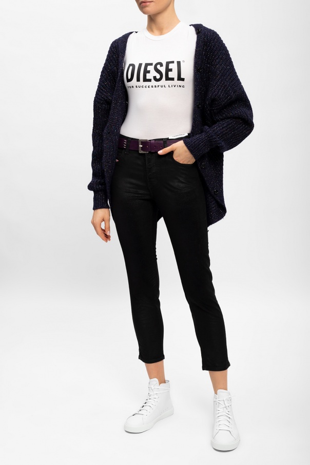 White ‘S-Mydori’ lace-up sneakers from Diesel. Crafted from leather, this high-top design features an embossed logo at the back and a white rubber sole.