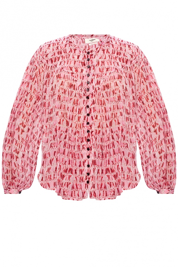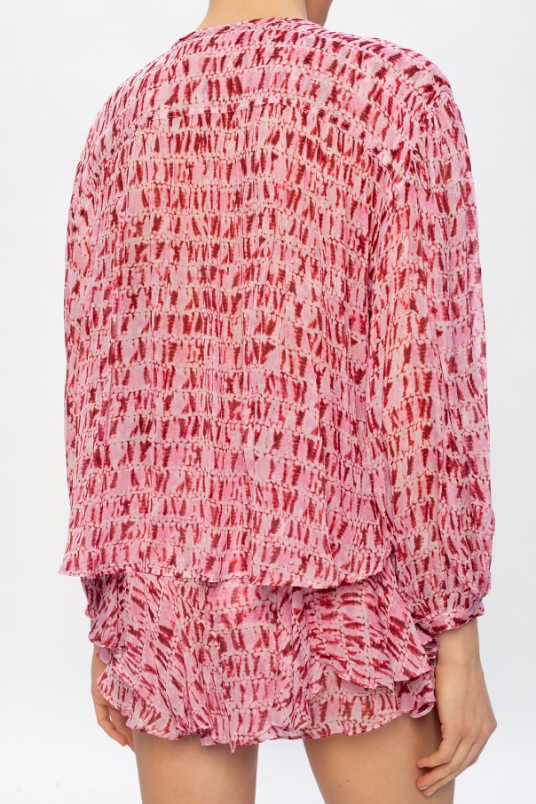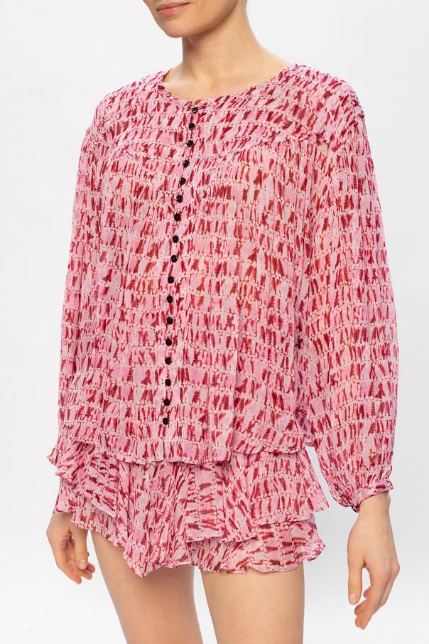 Pink shirt from Isabel Marant. Decorated with a tie-dye effect in maroon and white, this design is complete with button fastenings and long puff sleeves with elasticated cuffs.
