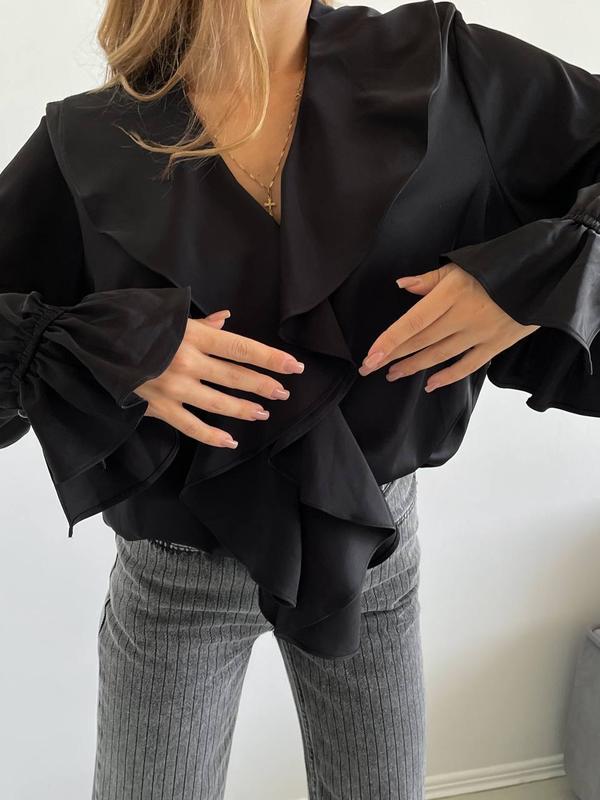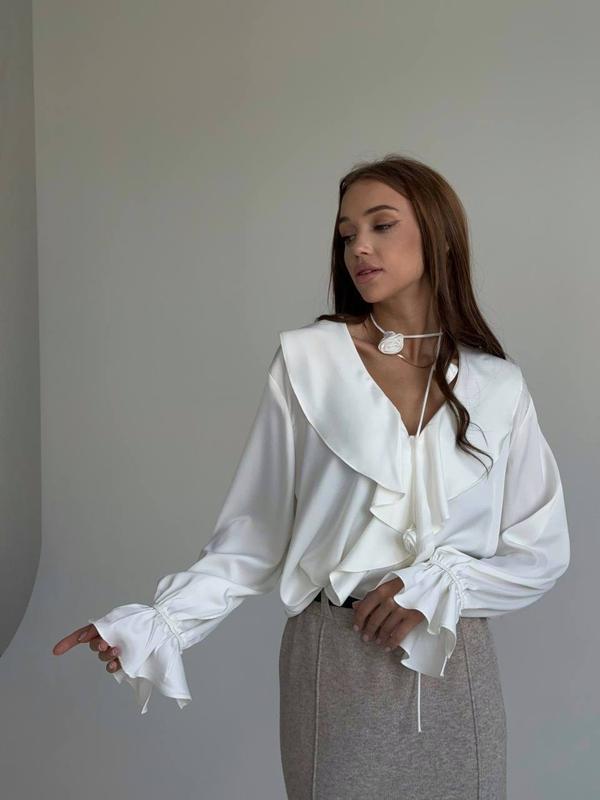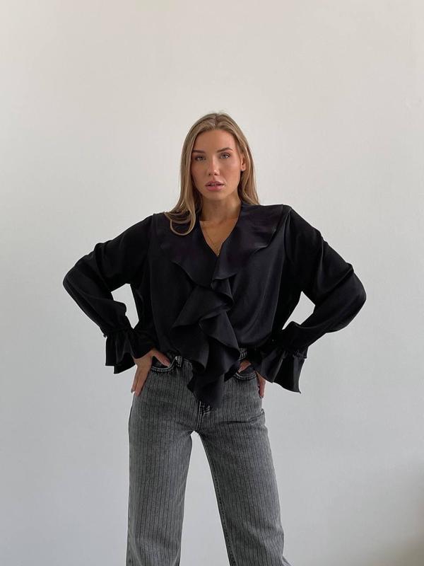 Зроблено в Україні?:Производство ,Длина рукава:Длинный ,Особенности кроя:Свободные ,Воротник:V образный вырез ,Фасон рукава:Широкие рукава ,Принт:Без принта ,Сезон:Демисезон ,Материал:Шелк ,Стиль:Классический , - Shipping