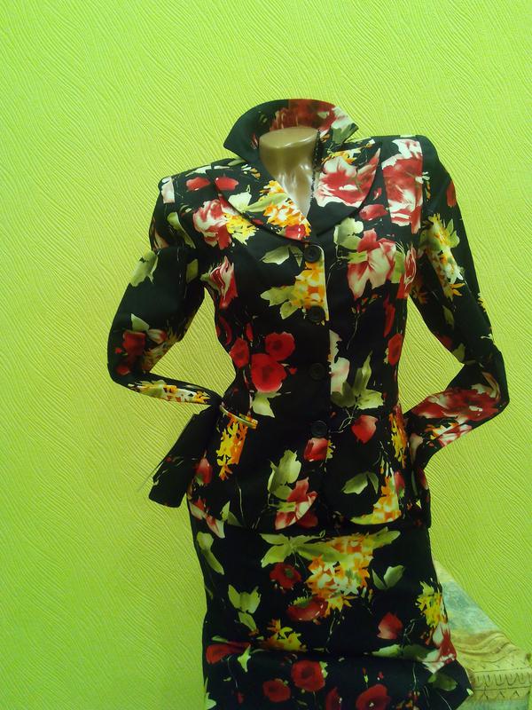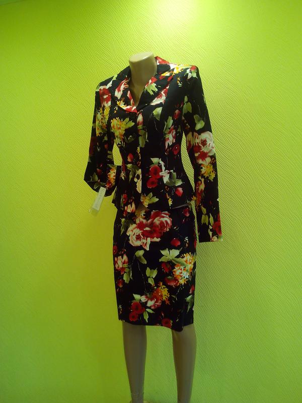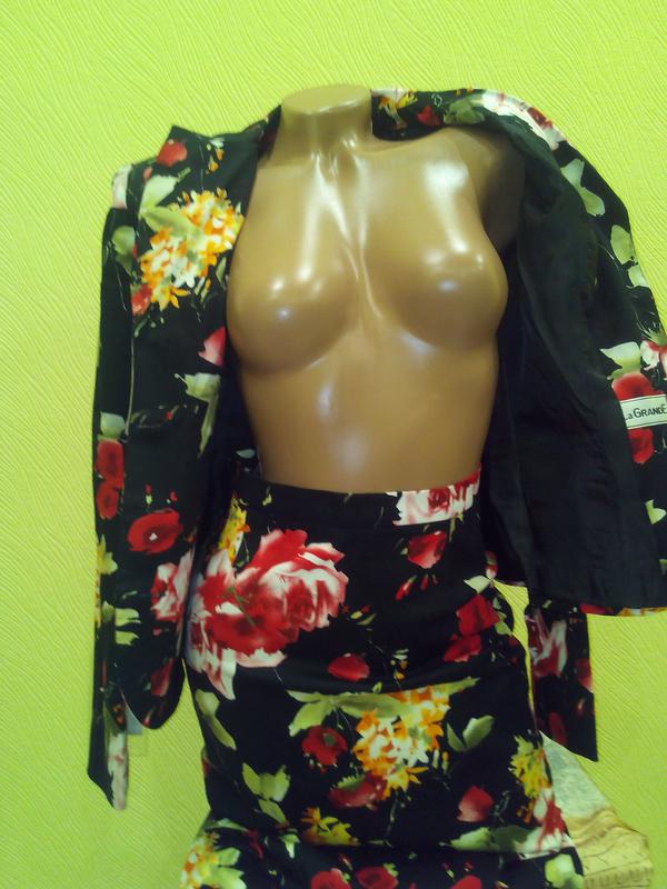 Предлагаю Вашему вниманию Обворожительный женский костюм "La Grande". Ткань деним. Костюм декорирован ярким флористическим принтом и состоит из пиджака и юбки-карандаш. Жакет застегивается с помощью ряда пуговиц.Воротник отложной. Юбка-карандаш застегивается сзади с помощью скрытой молнии и пуговицы. И пиджак и юбка внутри на шелковом подкладке черного цвета. На юбке имеются шлейки для вешалки. В таком шикарном костюме Вы точно никогда не останетесь незамеченной. Он подчеркнет все достоинства женской фигуры. От остальных костюмов отличается стильным дизайном и отличным качеством. Вещь будет радовать Вас и даже по истечении длительного времени, не потеряет своего великолепного первоначального вида.