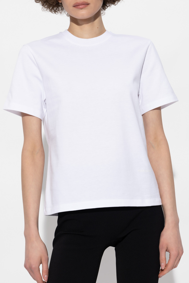 White crewneck T-shirt from FERRAGAMO. Made of cotton, this style features a printed logo on the front, short sleeves and ribbing on the collar.