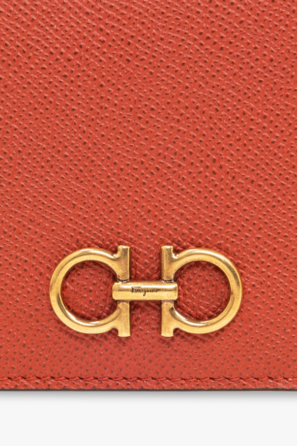 Brown bifold wallet from FERRAGAMO. Made of calf leather, this item features a snap button closure, the brand’s signature Gancini detail, zipped coin pocket at the back and gold-tone metal hardware. It has four slip pockets and thirteen card slots inside.