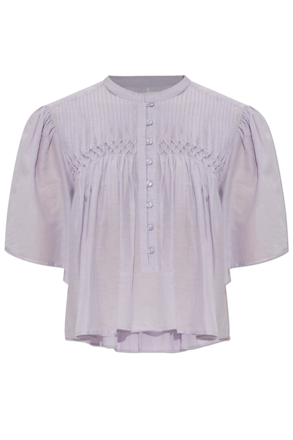 Introducing the Destiny Shirt from the esteemed Marant Etoile collection, a paragon of understated luxury. This loose-fit, short-sleeved shirt is crafted from a sublime blend of cotton and viscose, exuding a delicate lavender hue that epitomizes sophistication. Adorned with intricate ruching and pleating at the upper section, this shirt is a testament to elegance and individuality. The front is embellished with petite, round buttons that harmonize flawlessly with its subtle aesthetic. The meticulous stitching further enhances its exclusivity. Designed by Isabel Marant, who redefined Parisian chic, the Marant Etoile line is synonymous with effortless elegance and bohemian flair, characterized by delicate prints and light, textured fabrics. Why Choose This Product? Exquisite blend of cotton and viscose for luxurious comfort Unique ruching and pleating details for a distinctive look Designed by renowned fashion house Marant Etoile Perfect for those who appreciate subtle yet original fashion