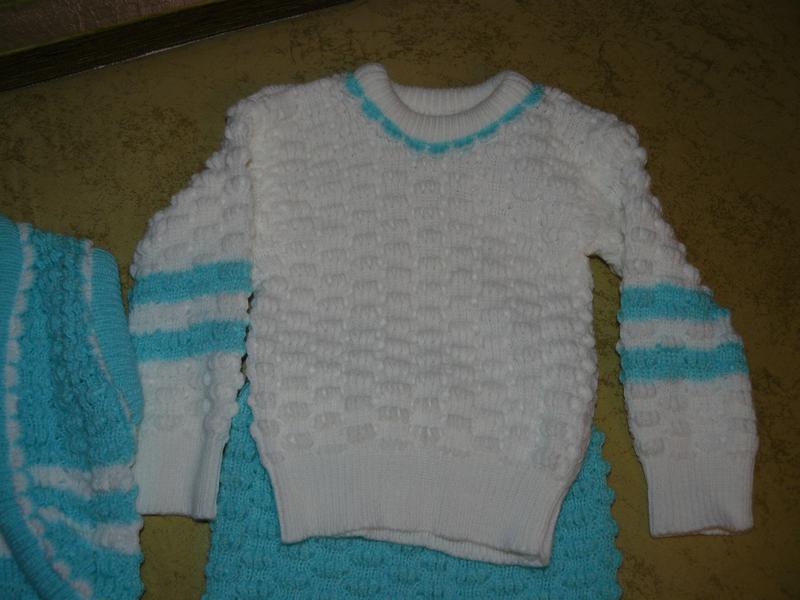 Свитерок - длина 30 см, ширина плеч 23 см, рукав 24 см, ширина груди 21 см.