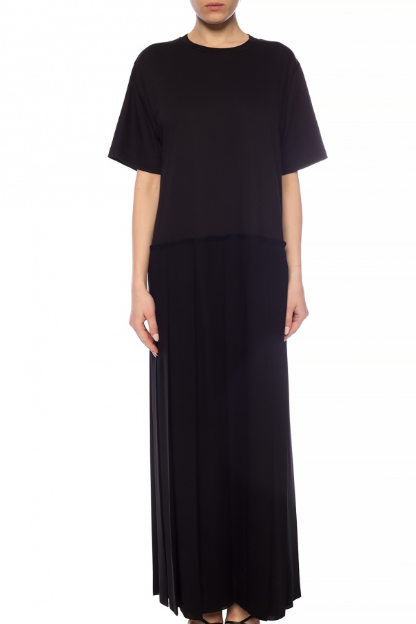 Black ‘Maja’ oversize dress from The Row. Made of cotton. Decorated with pleats. Round neck. Short sleeves.