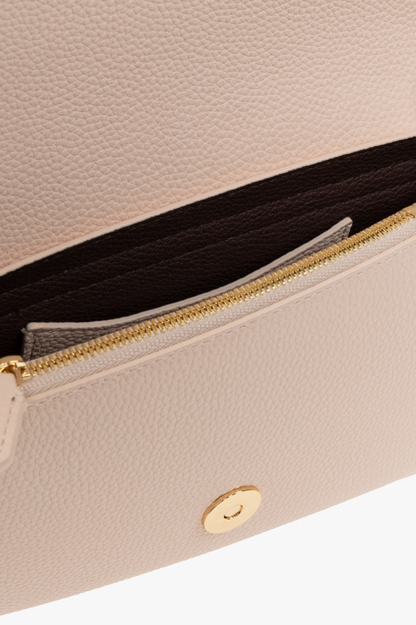 Blush pink shoulder bag from Emporio Armani. Made of faux leather, this model is complete with a magnetic snap, embossed logo in gold-tone, detachable fabric strap with a logo print and one internal compartment with one slip pocket and one zip pocket.