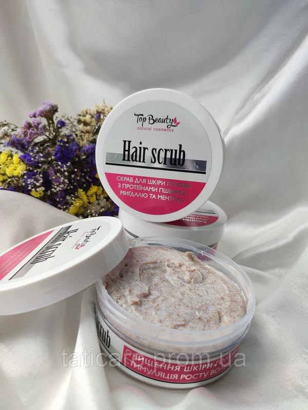 Скраб-пилинг для кожи головы с протеинами пшеницы, миндаля и ментола - натуральный состав!
