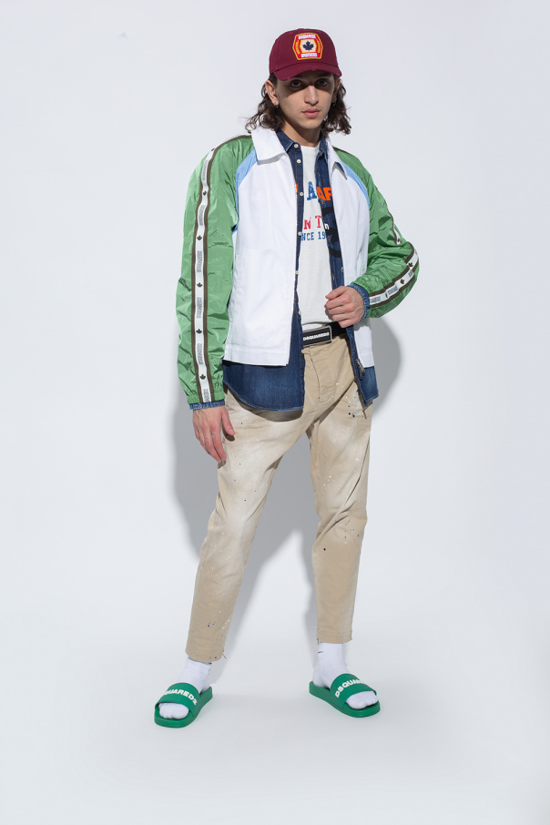 Green slides with a raised logo in white from Dsquared2. Made of rubber.