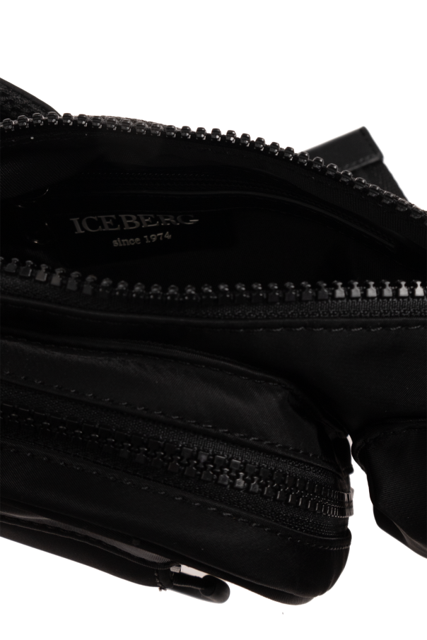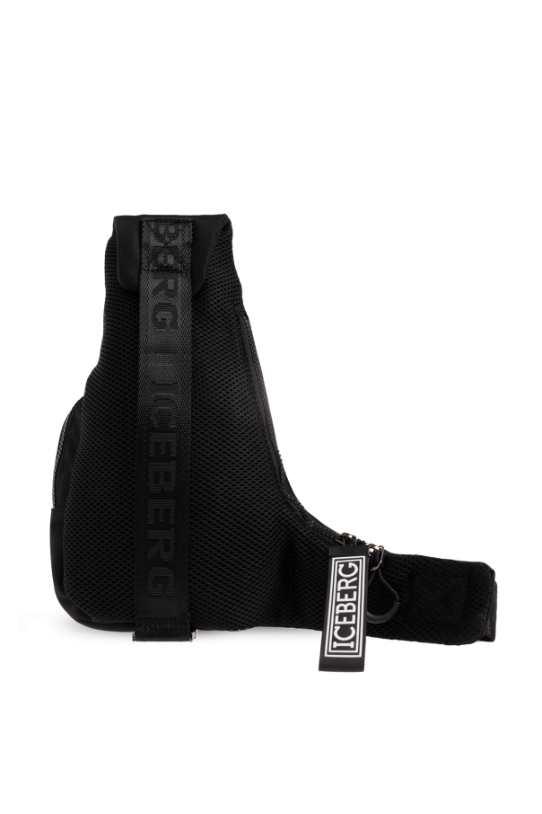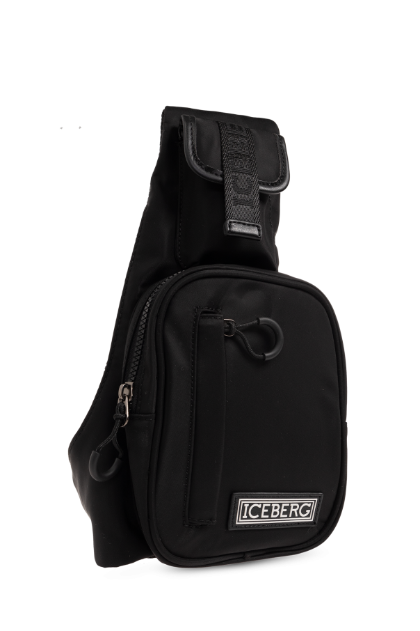 Black backpack from Iceberg. Fastened with a zip, this design features a logo patch, zipped front pocket, adjustable shoulder strap, one internal compartment and silver-tone metal hardware.