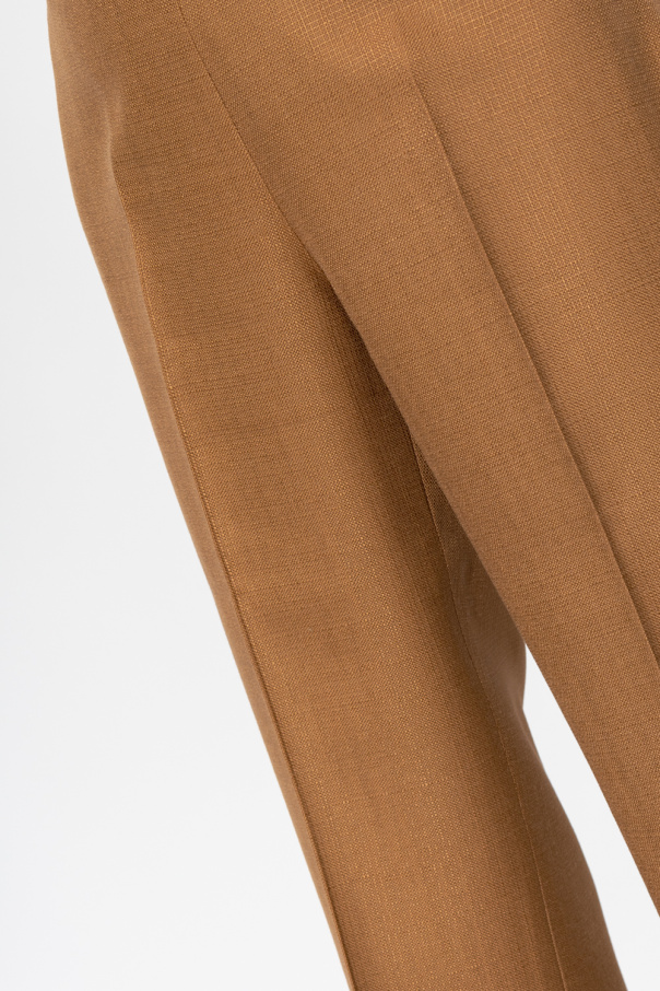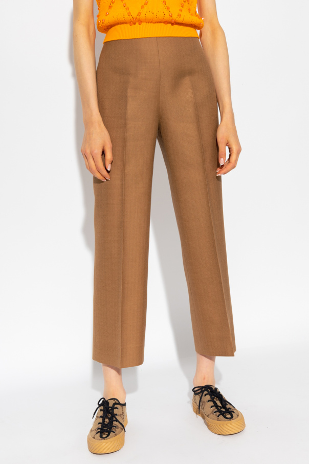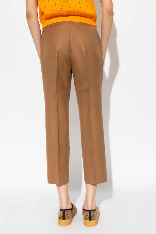 Brown pleat-front trousers with a side zip and straight, cropped legs from Gucci.