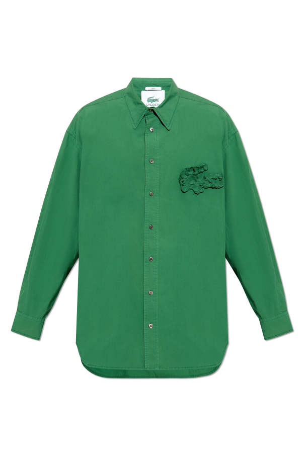 Introducing the Lacoste x Lemarié green shirt, a testament to the fusion of tradition and visionary design. Crafted from luxurious cotton, this shirt epitomizes elegance with its vivid green hue and smooth, well-fitted fabric. The shirt boasts a classic, slightly oversized cut with long sleeves and a standard collar, embodying both comfort and sophistication. A hallmark of unique artistry, the left chest features a textured crocodile logo, crafted with an appliqué resembling delicate petals or leaves. Designed as a unisex piece, this shirt transcends conventional fashion boundaries, making it a versatile addition to any wardrobe. Discreet buttons seamlessly integrate into the design, accentuating its modern allure. Why Choose This Product? Exquisite collaboration between Lacoste and Maison Lemarié. Limited edition - one of only over four hundred pieces. Unisex design for universal appeal. Available in select boutiques in Paris and London.